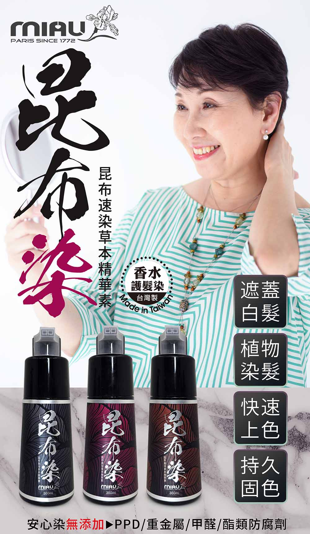 2分鐘前MIAU【昆布速染草本精華素】完美遮蓋白髮/染髮只要10分鐘/修護和鎖色的無臭配方/台灣生產〈無添加PPD/重金屬/甲醛/酯類防腐劑〉 - 均460/瓶►昆布染黑+紅+棕3瓶組