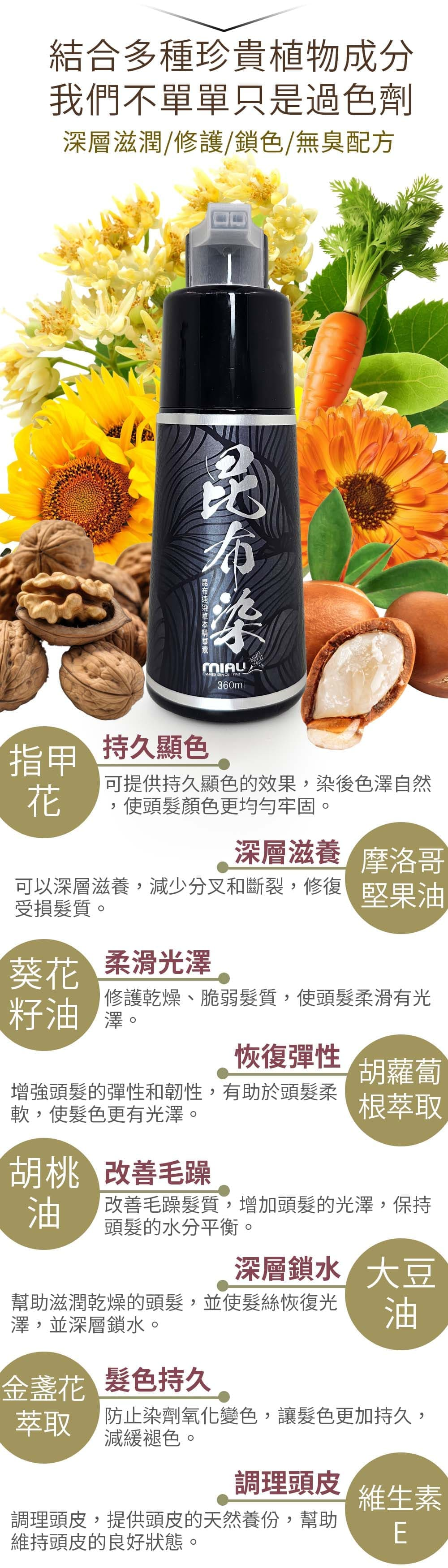 11分鐘前MIAU【昆布速染草本精華素】完美遮蓋白髮/染髮只要10分鐘/修護和鎖色的無臭配方/台灣生產〈無添加PPD/重金屬/甲醛/酯類防腐劑〉 - 均460/瓶►昆布染黑x3瓶組