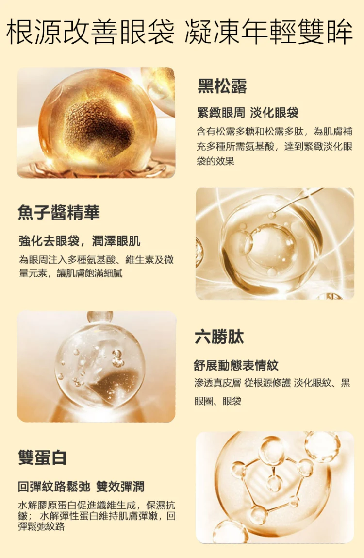 11分鐘前Kevin老師強烈推薦醫美級【黃金煥顏緊緻眼膜】 裹有黑松露、魚子醬、六勝肽等專櫃等級去眼袋成分,28天有效緊緻眼周去眼袋,限時搶購,售完恢復一盒1399!!! - 限時特價】買二送二僅需1690