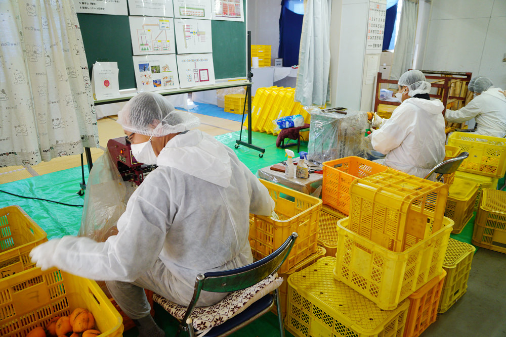 用日本果園裡獨有的電輪車裝上一箱又一箱滿滿的柿子