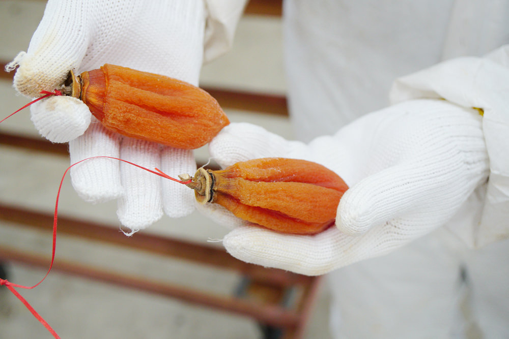 「能登志賀ころ柿」另一個特色就是A級品質在乾燥過程中會以手工揉,