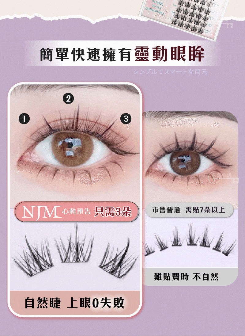 15分鐘前【限時買一送一】日本爆款吸睛NJM懶人睫毛,一秒粘貼 輕盈超細梗 自然不做作~轉為亞洲人眼型設計,上班 / 上學 / 約會 快速上妝秒出門 - 【限時特惠 買一送一】NJM懶人假睫毛兩入組(一秒粘貼 輕盈超細梗 自然不做作)-NT$ 790
