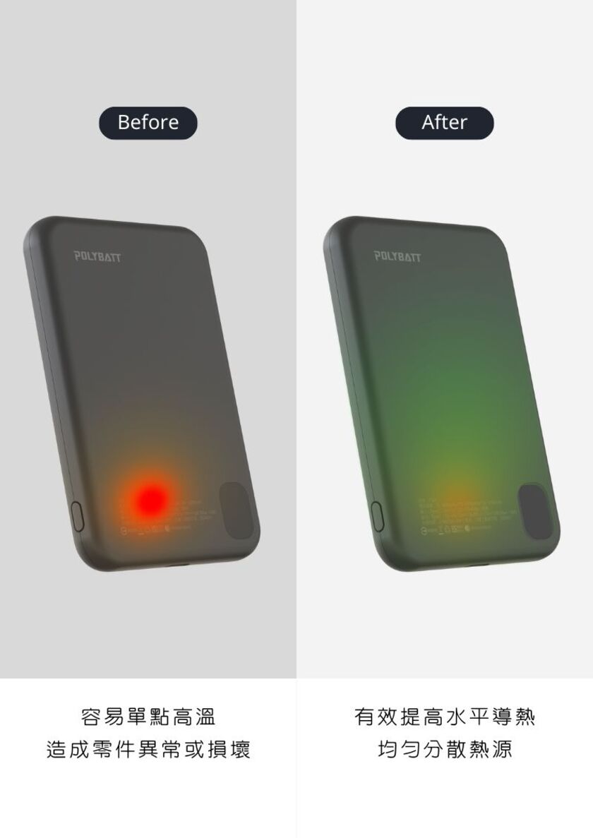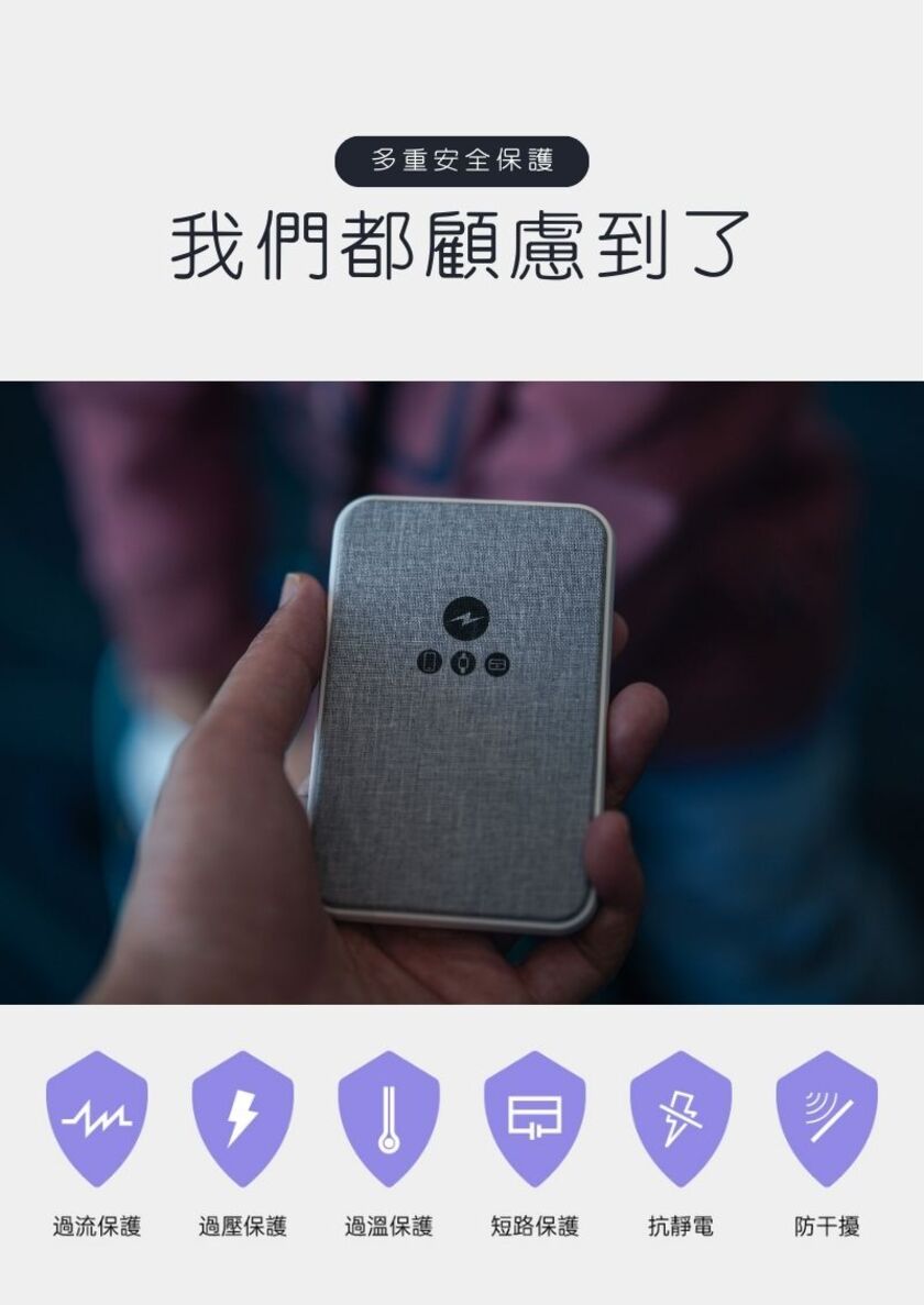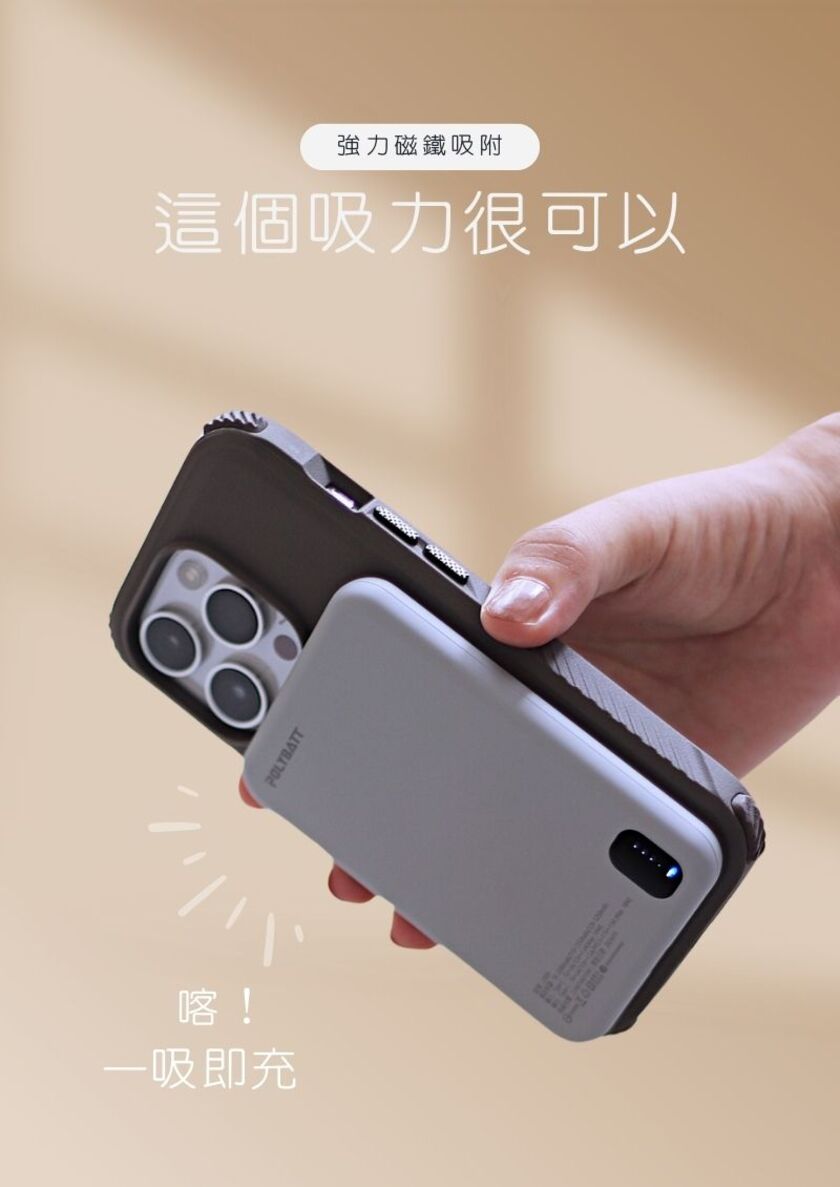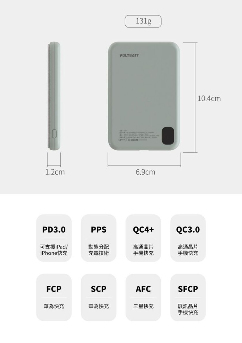 「置入石墨烯銅導片」,透過非常優秀的「水平熱傳導」 -不同以往的單點散熱,迅速將熱源向外擴展,以達到優良散熱效果,更加保護電池 -不卡鏡頭,相容MagSafe -置入新型特殊充電線圈結構,讓你三用轉換充:蘋果手機、安卓手機、AppleWatch、AirPods -輸出皆快充,無線15W MAX/有線18W MAX(由於此款產品無MFM認證,因此iPhone無線充電輸出為7.5W) -輕薄好攜帶,厚度/寬度適中,重量僅131g,放入口袋即刻出發 -超極好握感,嚴選高品質耐磨布料、親膚性表面特殊塗裝