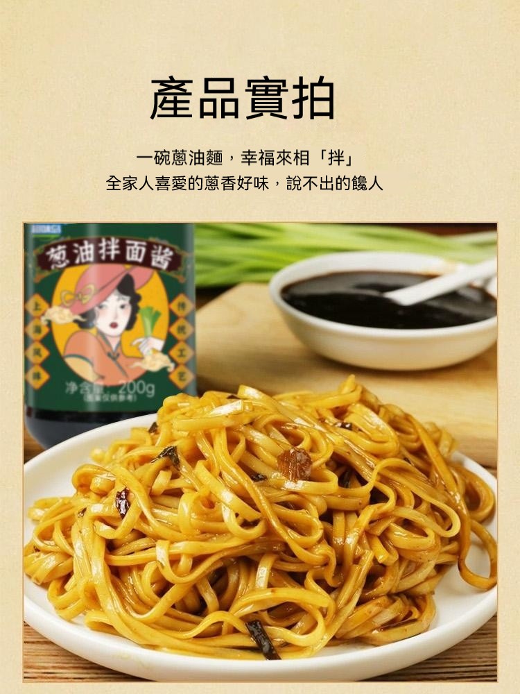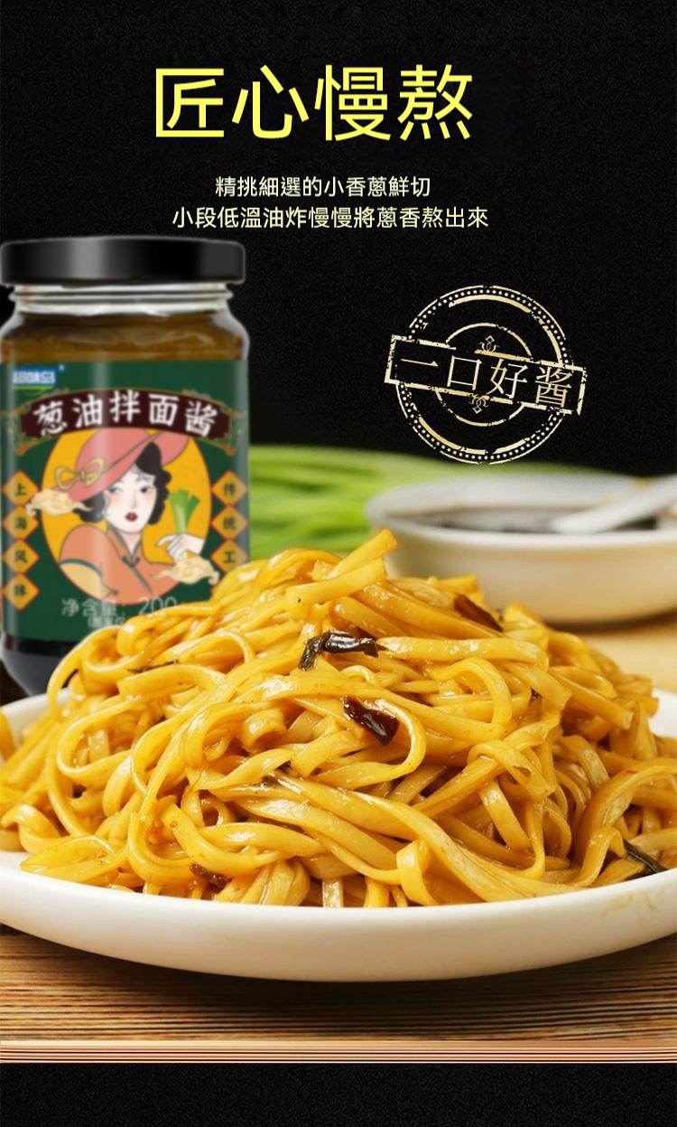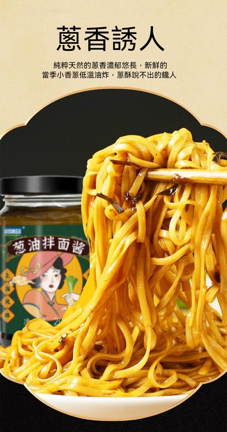 20分鐘前醇厚麵醬,完美搭配麵食,展現獨特風味 ,五分鐘就能吃上的蔥油拌面 ,無需繁瑣步驟 ,開瓶即食 油潤蔥香即刻享用 ,增鮮提香 ,秒變大廚 ,飯或者面都能一勺搞定 - 【98%客戶選擇】4入組-NT$1180