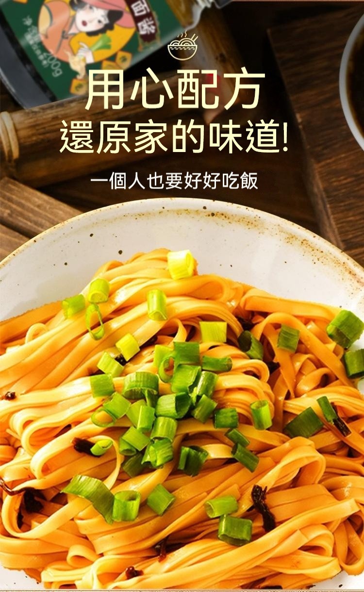7分鐘前醇厚麵醬,完美搭配麵食,展現獨特風味 ,五分鐘就能吃上的蔥油拌面 ,無需繁瑣步驟 ,開瓶即食 油潤蔥香即刻享用 ,增鮮提香 ,秒變大廚 ,飯或者面都能一勺搞定 - 【98%客戶選擇】4入組-NT$1180