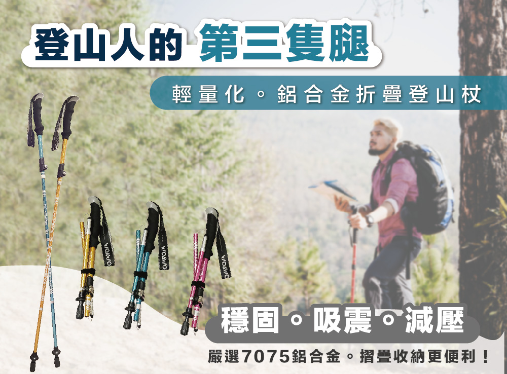 半小時前嚴選7075鋁合金登山杖 重量僅290g!輕便好攜帶 好的登山杖不只幫助減輕上半身重量 更能減緩膝關節、腳踝的衝擊! 讓你的登山旅途更加健康舒適! - 2支優惠價1599