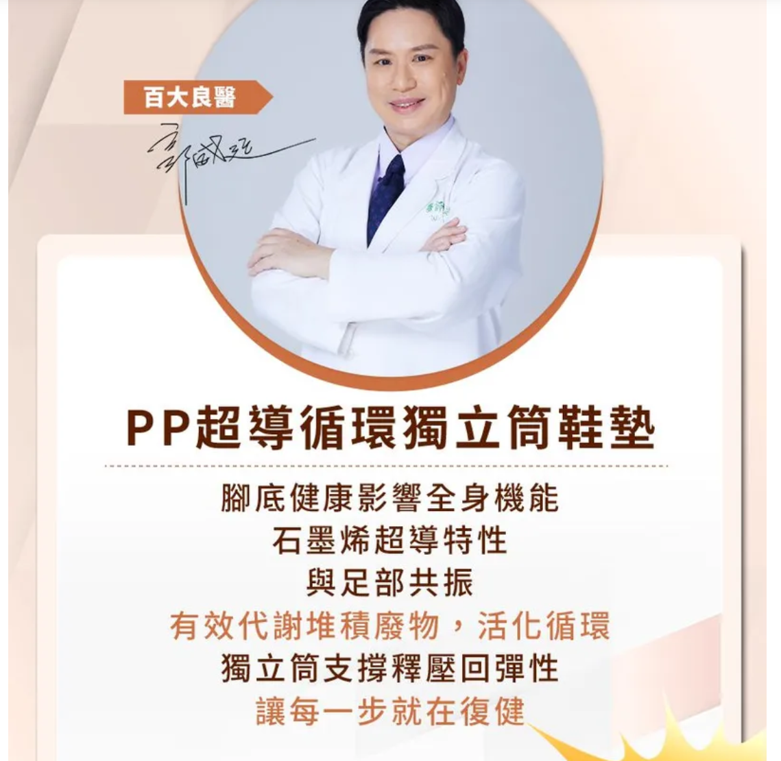 4分鐘前—PP石墨烯超導循環獨立筒鞋墊— 您隨身的足部按摩師!! , 150顆獨立筒 ⇉ 支撐身體 平均分散受力 ,HSG蜂巢式石墨烯⇉ 促進下半身血液循環 ,科技石墨烯面料 ⇉ 快速升溫 提高保暖度 ,打通腳底66個重要穴道, 刺激經絡穴脈 促進五臟六腑循環『腳若暖、全身通』 - 【今日限定】石墨烯鞋墊-女款-1雙 - NT$ 980