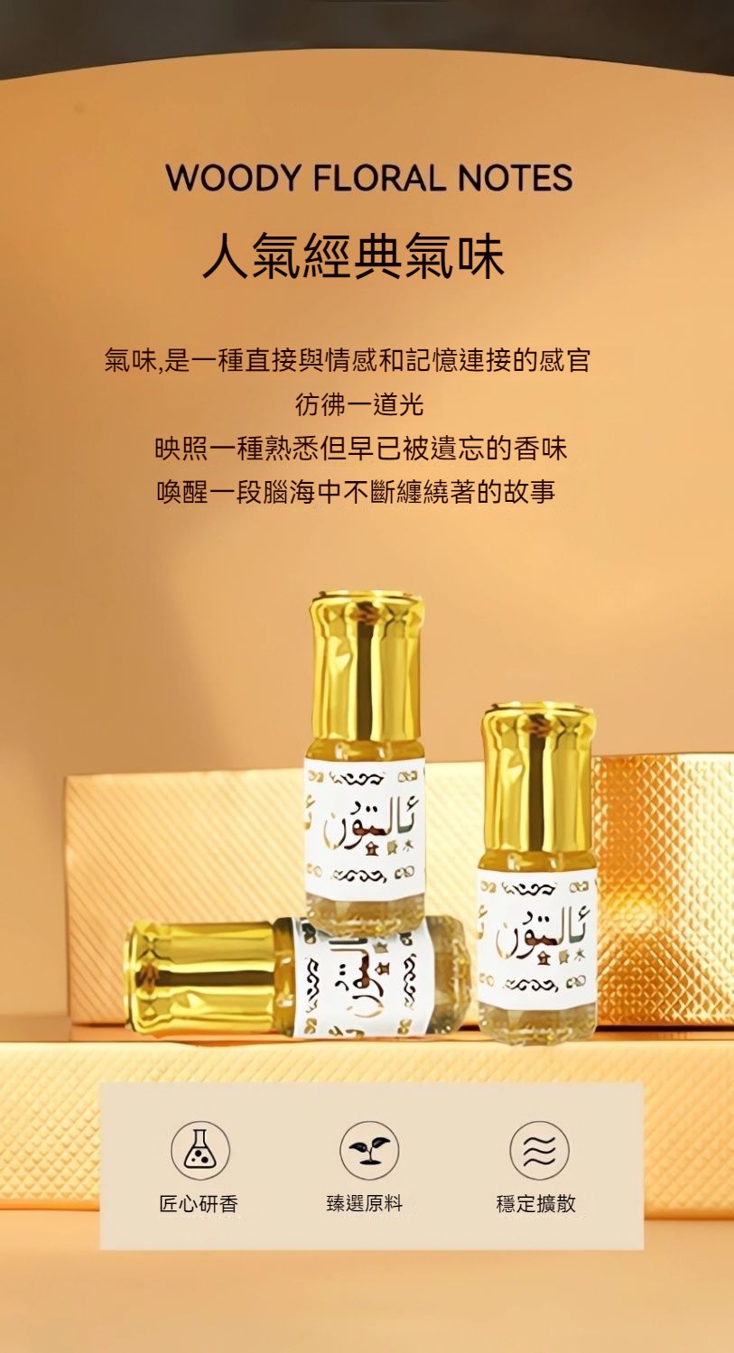 5分鐘前巴基斯坦黃金香水的主要成分是不含酒精,不含麝香的高純度香精。 這種香水以其高濃度和持久留香的特點而受到關註。它的香味被描述為奶香奶氣的,帶有一種保護欲,聞起來非常舒適。香水的香味被形容為清雅的奶香,適合日常使用;巴基斯坦黃金香水以其高純度和持久留香的特性,能夠散發迷人的魅力,類似於古代歡宜香的效果,因此被賦予了歡宜香的稱號。這種香水不僅具有自然體香的效果,還能在特別場合帶來愉悅與放松的感覺, - 【團購優惠】24入組-NT$1280