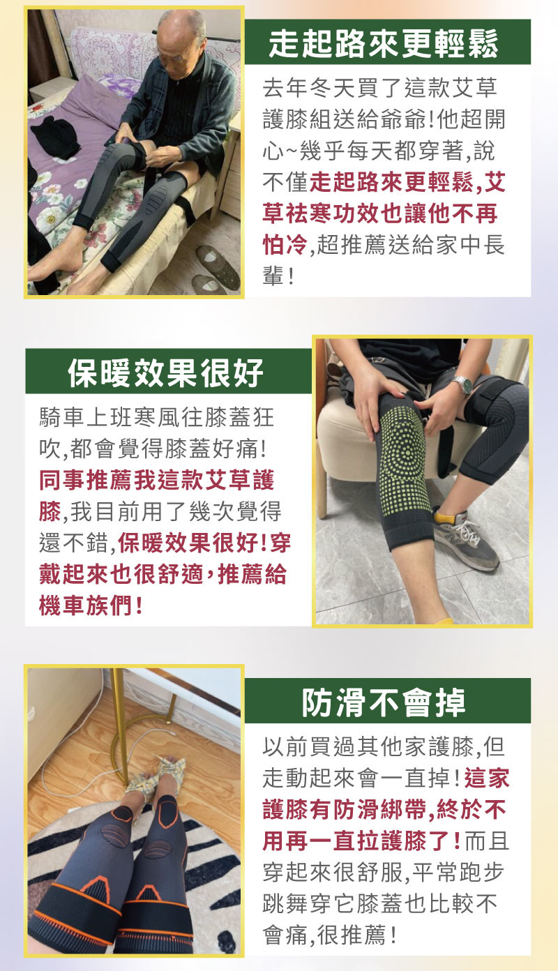 7分鐘前爆款艾草護膝 真正加倍保暖護膝,四季通用,老寒腿、關節涼、膝部不適專用! - 買1送1雙 NT$998 日本第一套會發熱的護膝(降低99%關節疼痛感)