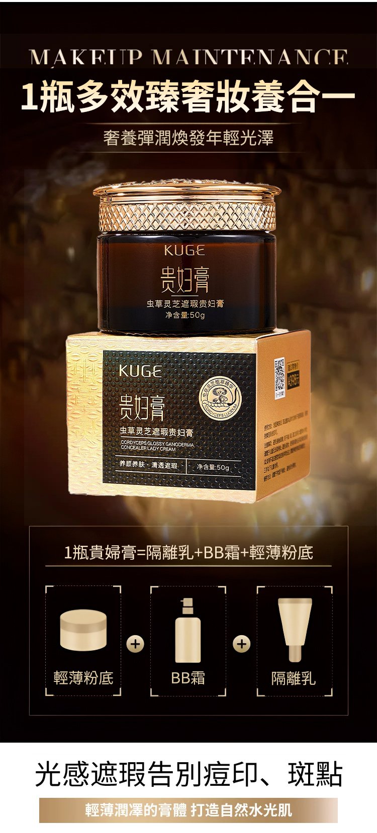 4分鐘前酷格蟲草靈芝遮瑕貴婦膏滋潤保濕提亮緊緻乳霜 - 【68%OFF】買一送二---3入組 NT$899