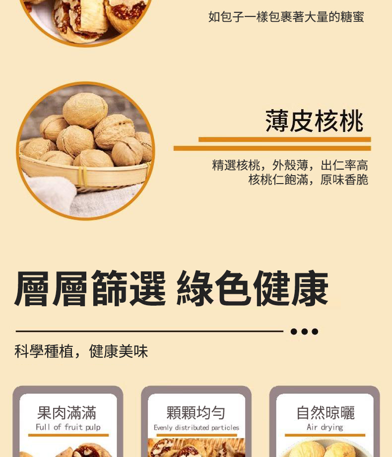2分鐘前軟糯香甜的無花果與醇厚香脆的核桃完美結合,口感超棒,營養豐富,富含多種維生素和礦物質及優質蛋白質等 - 3入組 NT$1498(250g*3)