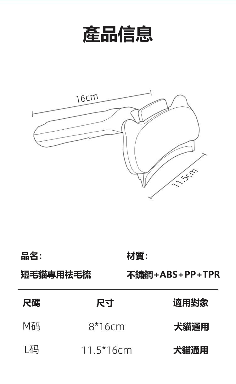 2分鐘前 貓犬通用 寵物祛浮毛梳子 不傷皮膚 一鍵去毛 弧形設計 圓潤梳齒 - 【嘗鮮價】2入組-NT$998 均價499/入