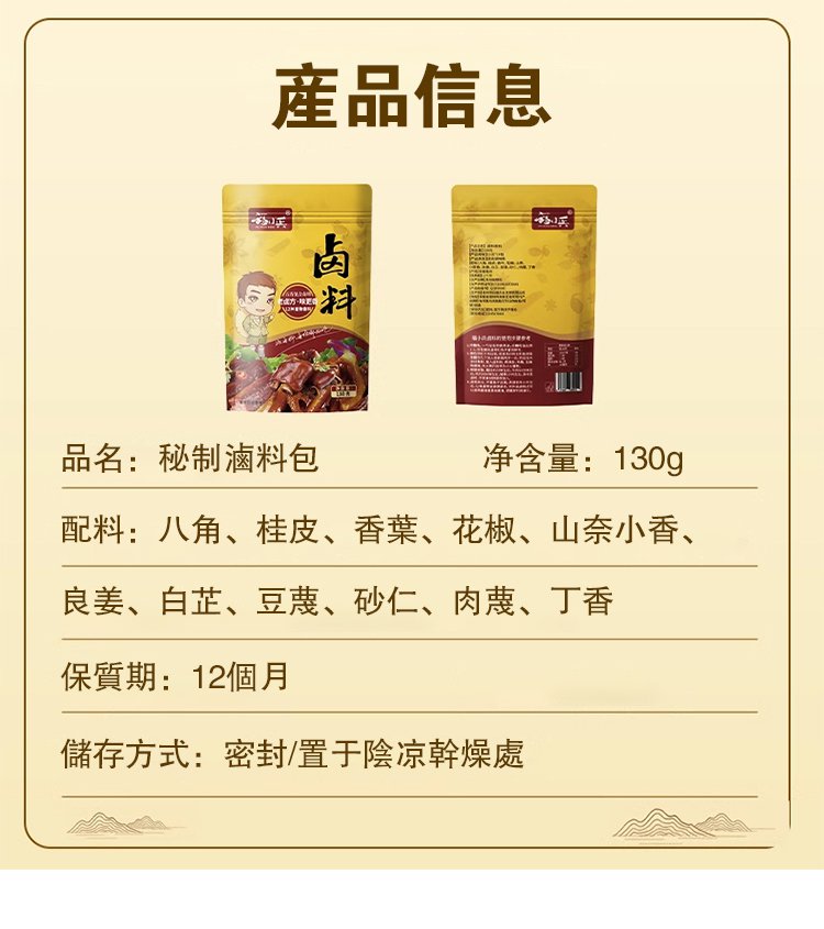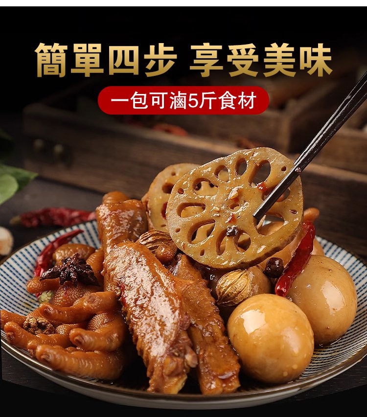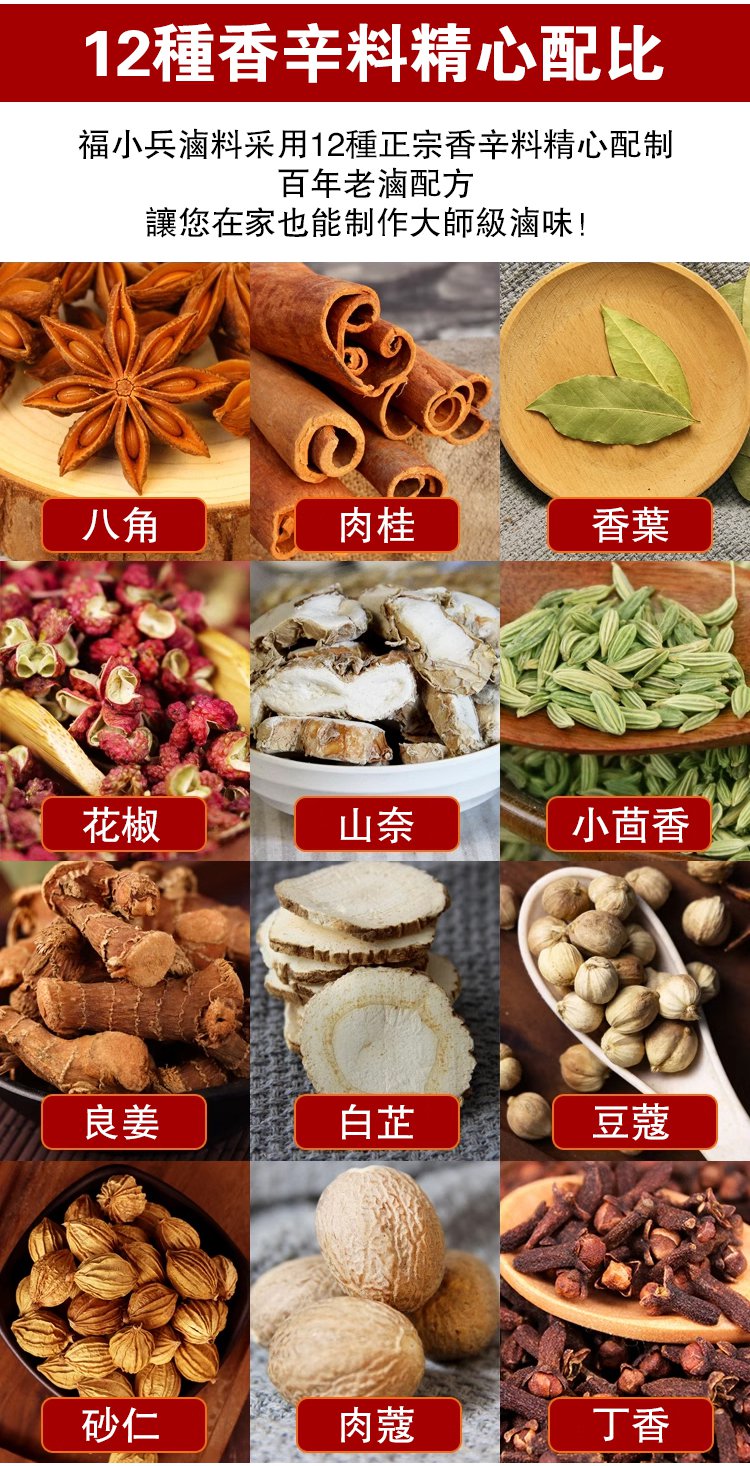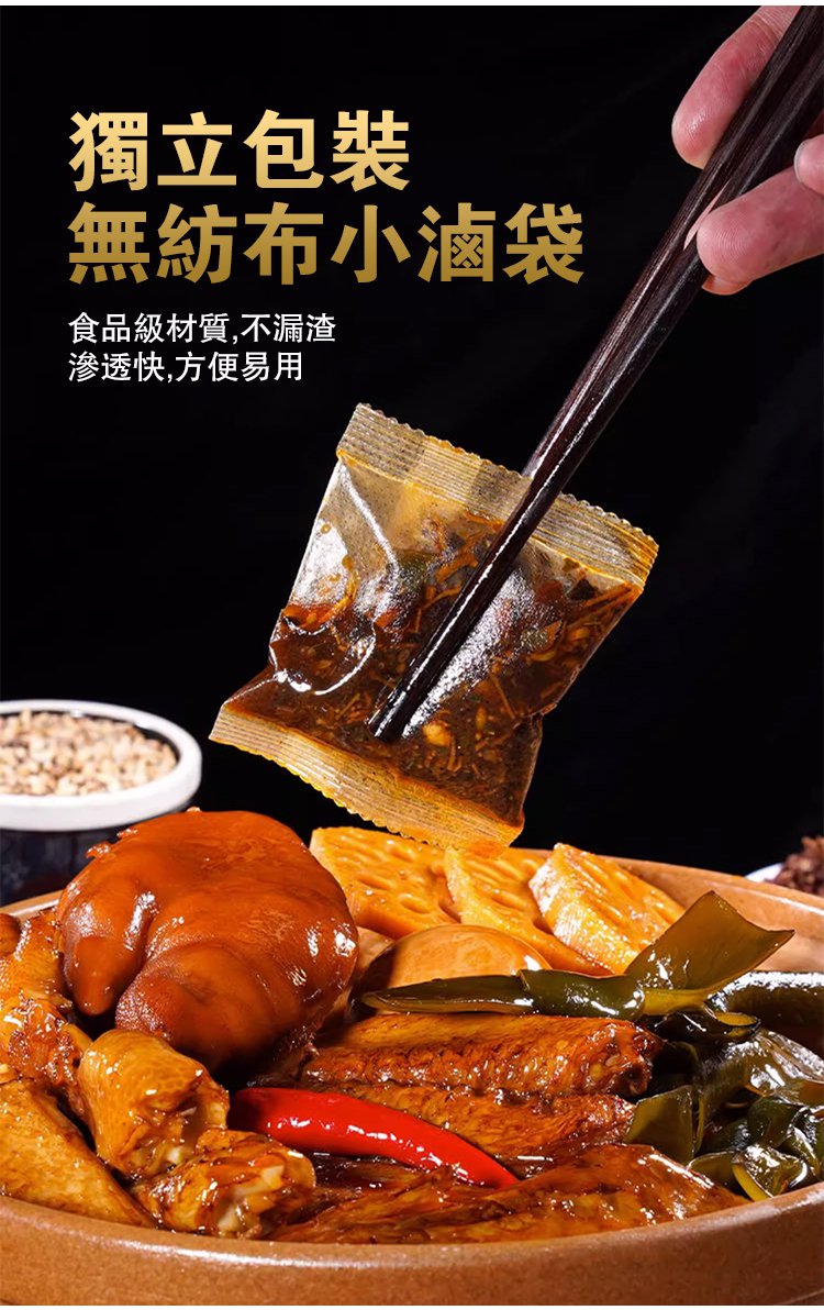 20分鐘前【限時搶購】秘製鹵料包 有了這個秘製滷料包,想吃什麼就滷什麼!百年老店獨家秘製配方,自己在家做,乾淨又衛生,味道比外面賣的還好吃~十八味秘制鹵肉料包 - 3包(30袋)NT$998