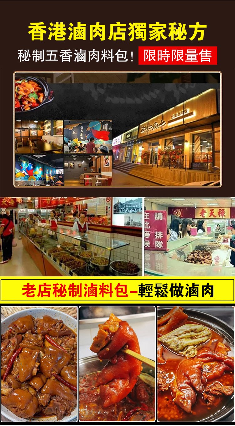 7分鐘前【限時搶購】秘製鹵料包 有了這個秘製滷料包,想吃什麼就滷什麼!百年老店獨家秘製配方,自己在家做,乾淨又衛生,味道比外面賣的還好吃~十八味秘制鹵肉料包 - 3包(30袋)NT$998