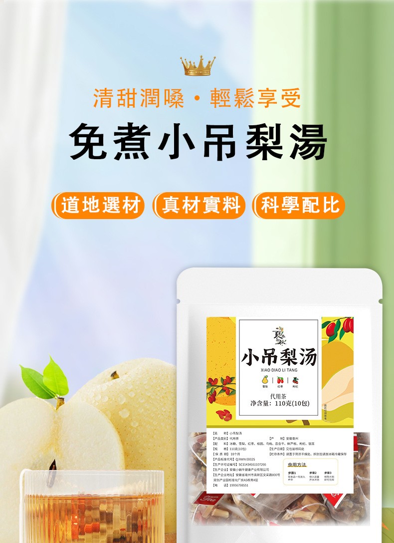 2分鐘前【天然養生佳品】小吊梨湯,清新潤喉,潤肺生津,優質選材,爽口甘甜,老人小孩都愛喝。 - 【破盤下殺】小吊梨湯5入組-NT$ 1199