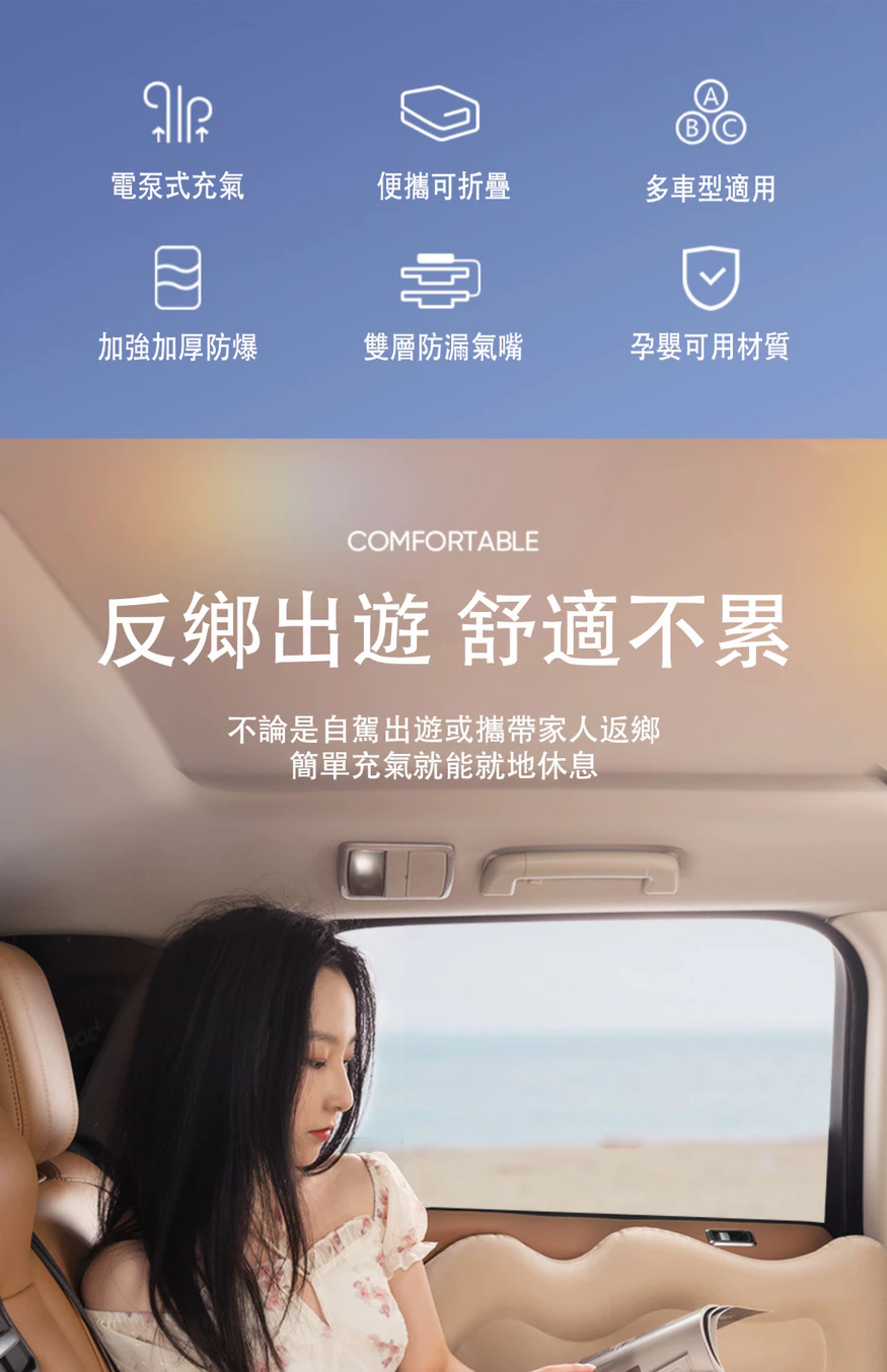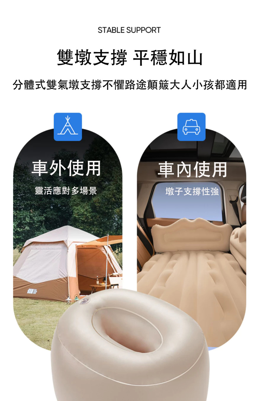 汽車充氣床墊【親膚植絨+全配套裝】雙人充氣床墊 露營充氣床墊