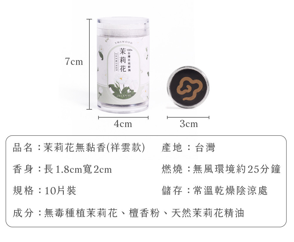 20分鐘前原木香 茉莉花無黏香 10g/ 20g 無粘香 祥雲香 食用級 無毒 花壇茉莉花 窨茶 薰香 擴香 開運 招財 濃縮10倍香氣 臥香 線香 無黏粉 獨家技術 - 茉莉花無黏香 祥雲款(10片裝)7罐