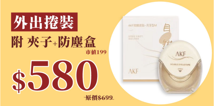 4分鐘前日韓熱銷TOP1【AKF電眼貼】#快速黏貼 #隱形無痕 #防水又防汗/秒變迷人電眼完美隱形貼合/千位女孩票選/命定雙眼皮貼就是它 - 【外出捲裝】附 夾子 & 防塵盒一入組NT$580