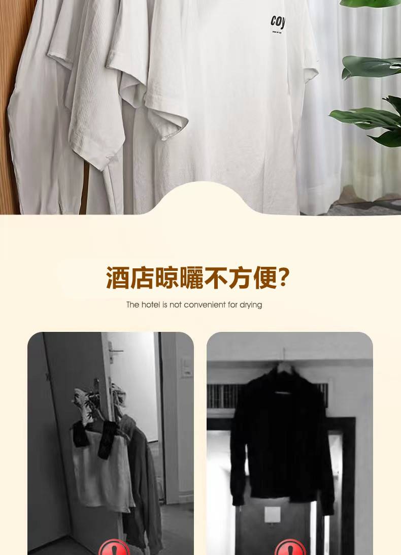 7分鐘前 【多功能折疊晾衣架】 便攜旅遊酒店晾曬掛架 出差必備晾衣神器! - 【破盤嗨購】買三送九 12入組NT$1398